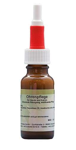 Per la cura delle orecchie per cani, mettere 1 – 2 gocce nell’orecchio e massaggiare bene.