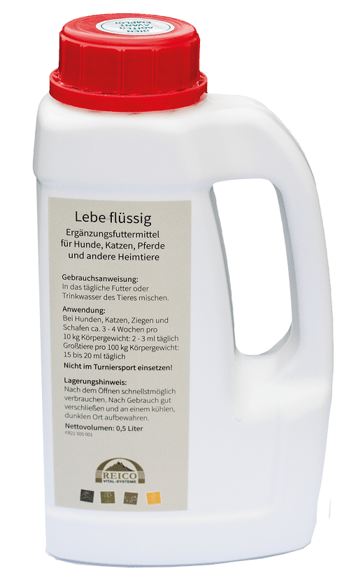 Per il benessere dell’apparato digerente di cani, gatti, cavalli, capre e pecore circa 3-4 settimane 2-3 ml per 10 kg di peso corporeo al giorno.
