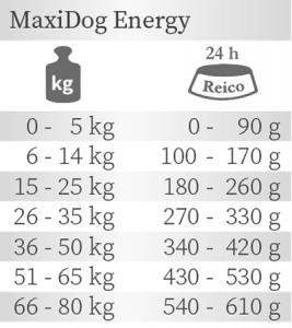 Ecco il dosaggio consigliato per il MaxiDog Energy di Reico: