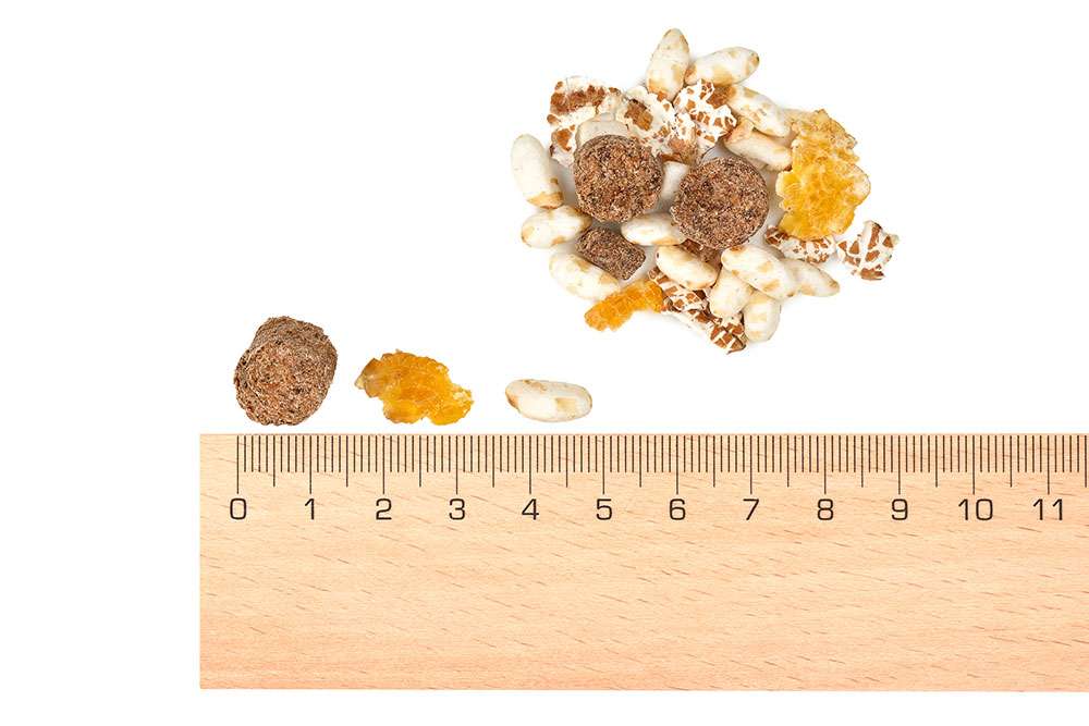 Questo mangime secco si può anche mescolare con acqua tiepida (quantità d’acqua inferiore a quella del cibo).