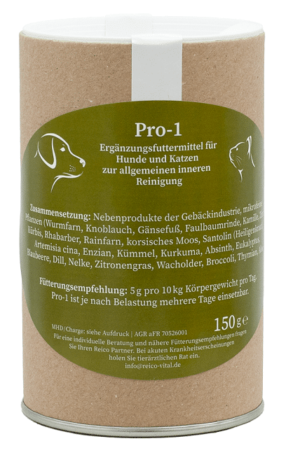 Pro-1 è una miscela di erbe studiata per migliorare la composizione del sangue e per regolarizzare l’attività intestinale. Questa miscela può prevenire la formazione di parassiti intestinali e serve al contempo per la depurazione interna.
