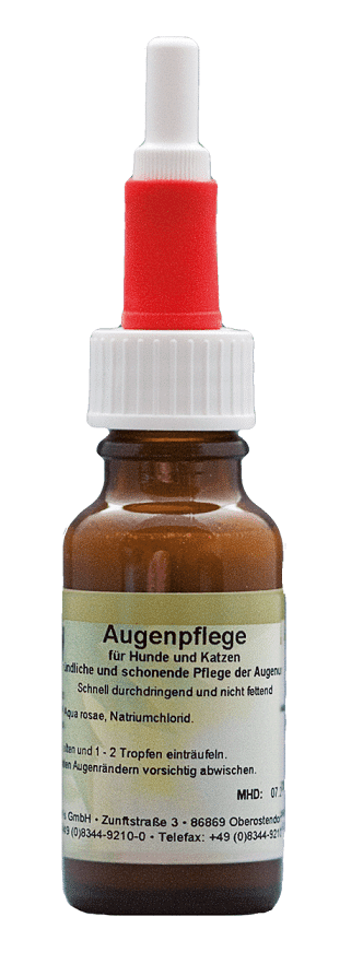 Per il trattamento degli occhi per cani, tenere il flacone sull’occhio e instillare 1 – 2 gocce. Rimuovere con cura lo sporco intorno agli occhi.